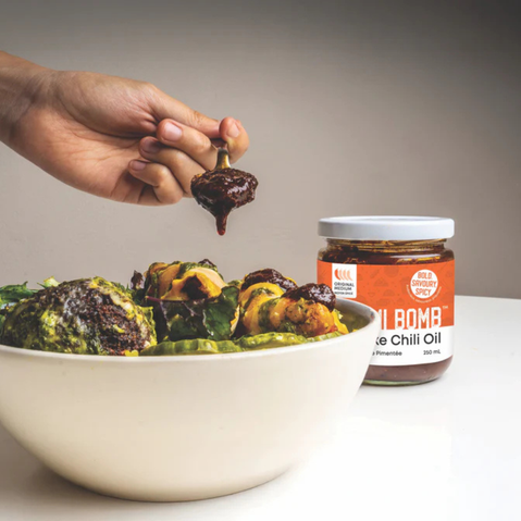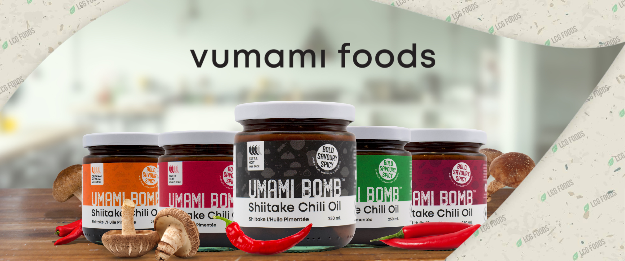 Vumami Foods is the producer of Umami Bomb shiitake chili oils. Vumami Foods was named to represent vegan (“V”) umami. Many of the traditional and commonly known sources of umami come from animal products including cured meats, meat extracts, shellfish, and aged cheese or from highly processed sources (eg. MSG/yeast extract). We were inspired to create Vumami Foods to bring more umami-rich experiences without the use of animal products while also using all-natural, preservative-free, and extract-free ingredients. Our Umami Bomb shiitake chili oils are proudly made on Vancouver Island and are packed full of aromatic spices, fermented bean paste, and shiitake mushrooms. The one-of-a-kind flavour is deep, rich, spicy and so craveable you'll put it on almost anything.