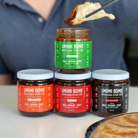 What motivated you to start your company and create the products that we see today? We are two omnivores turned vegans and our plant-based journey started many years ago at a Buddhist vegan restaurant in South Korea. During the course of the meal, there were countless small dishes all with unique textures and flavours, and many shared a rich, savoury umami quality. It was amazing to us that it was all so delicious and 100% plant-based. As lifelong condiment lovers and foodies, we wanted something that we could add to our vegan meals to make them as delicious and craveable as the food we had there. Taking inspiration from global sources of umami, Umami Bomb was created through the careful blending of premium ingredients like aromatic spices, fermented bean paste, and shiitake mushrooms.